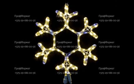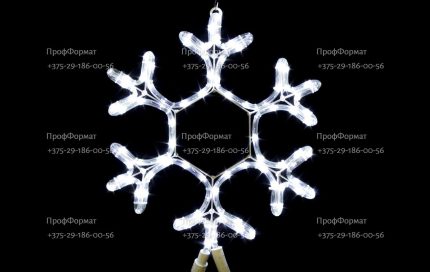 Типы и различия: Бывают статичного свечения с мерцающими диодами и с контроллерами для изменения режимов свечения. Так как фигуры сделаны из дюралайта, у которого степень защиты IP65, то снежинкам не страшны морозы и осадки.