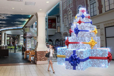 Какой же Новый год без подарков? Разместив огромную светодиодную ель в виде сложенных друг на друга подарочных коробок с бантами, вы обязательно произведете впечатление на гостей и про стимулируете продажи.