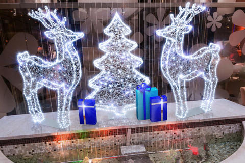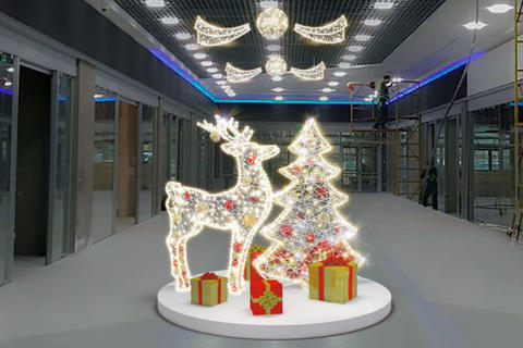 Стилизованная рождественская ель высотой хорошо сочетающаяся с другими световыми фигурами, подойдет для создания фотозон, наполнит пространство светом и добавит уюта.